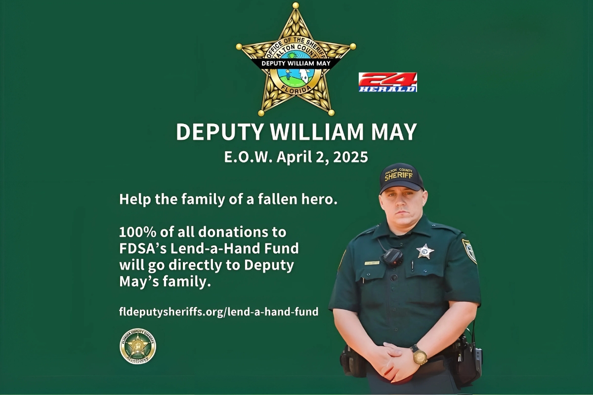 ഫ്ലോറിഡ:ബുധനാഴ്ച ഒരു ഡോളർ ജനറൽ സ്റ്റോറിൽ നടന്ന " വെടിവയ്പ്പിൽ" ഫ്ലോറിഡ വാൾട്ടൺ കൗണ്ടി ഡെപ്യൂട്ടി വില്യം മേ കൊല്ലപ്പെട്ടു, പരിക്കേറ്റതിനുശേഷവും ഡെപ്യൂട്ടിക്ക് പ്രതിക്ക് നേരെ വെടിയുതിർക്കാൻ കഴിഞ്ഞുവെന്ന് വാൾട്ടൺ കൗണ്ടി ഷെരീഫ് മൈക്ക് അഡ്കിൻസൺ പറഞ്ഞു.