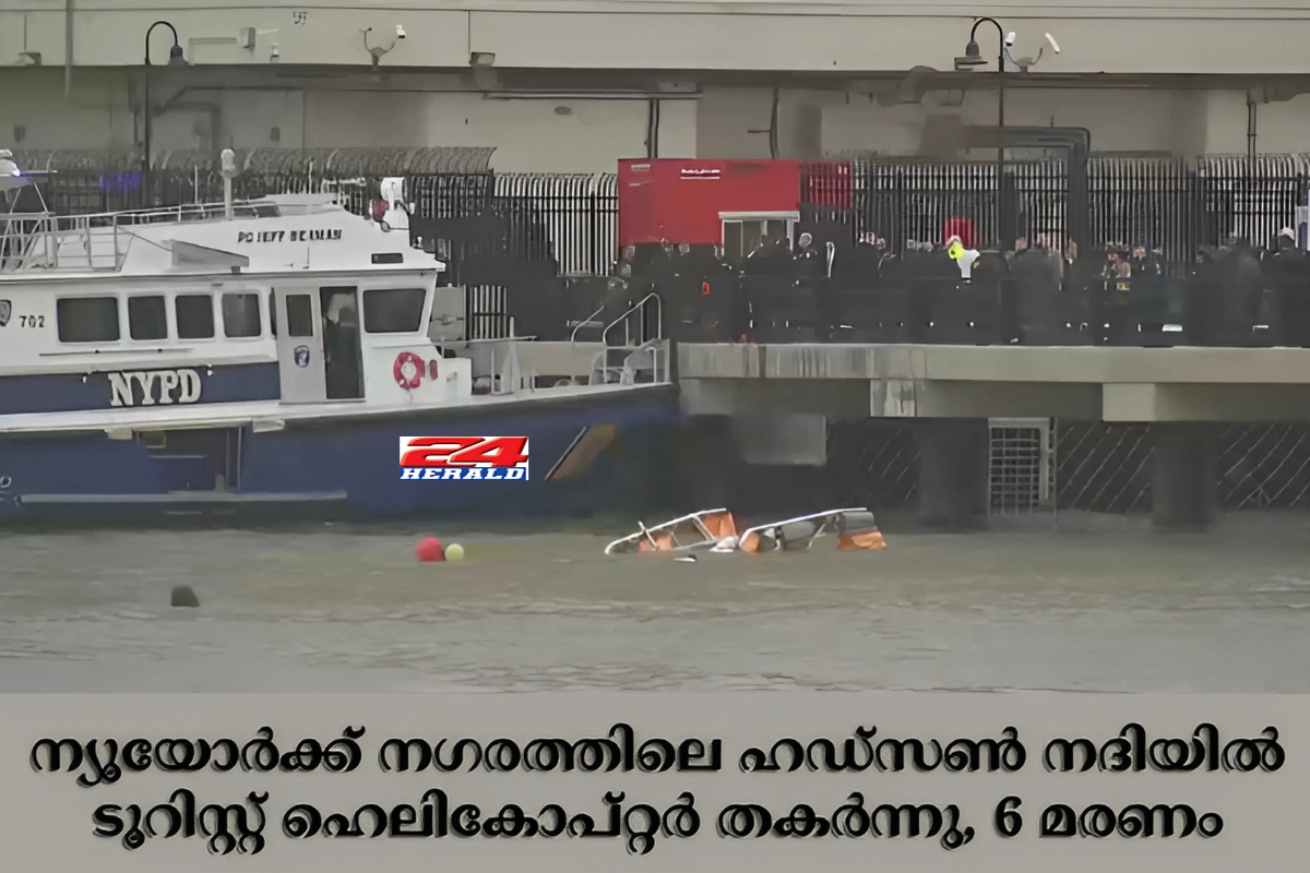 ന്യൂയോർക്ക്: ന്യൂയോർക്ക് നഗരത്തിലെ ഹഡ്‌സൺ നദിയിൽ വ്യാഴാഴ്ച ഉച്ചയ്ക്ക് ടൂറിസ്റ്റ് ഹെലികോപ്റ്റർ തകർന്നു മൂന്ന് കുട്ടികൾ ഉൾപ്പെടെ ആറ് പേർ മരിച്ചു.