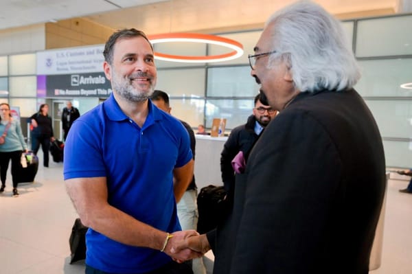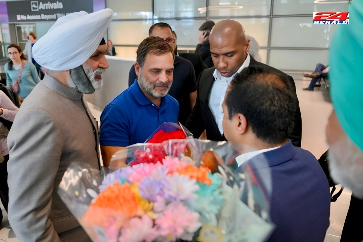 എയർപോർട്ടിൽ എത്തിച്ചേർന്ന കോൺഗ്രസ് നേതാവ് രാഹുൽ ഗാന്ധിയെ ഇന്ത്യൻ ഓവർസീസ് കോൺഗ്രസ് അംഗങ്ങളും കോൺഗ്രസ് ഓവർസീസ് മേധാവിയുമായ സാം പിട്രോഡ സ്വാഗതം ചെയ്തു.