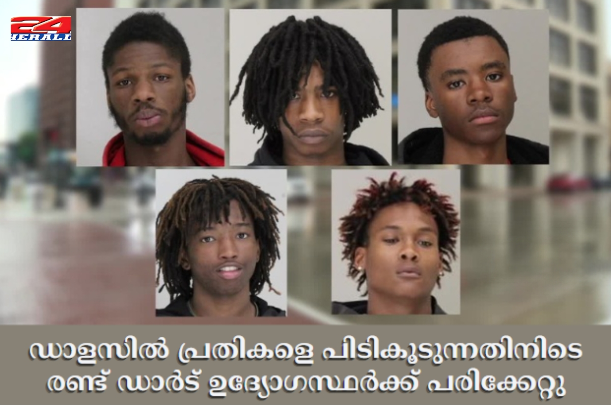 ഡാളസ്: ഡാളസിന്റെ ഹൃദയഭാഗത്ത് അഞ്ച് പ്രതികളെ പിടികൂടുന്നതിനിടെ രണ്ട് DART ഉദ്യോഗസ്ഥർക്ക് പരിക്കേറ്റു.ഡാളസ് പോലീസും അവരുടെ രണ്ട് ഉദ്യോഗസ്ഥർക്ക് പരിക്കേറ്റതായി സ്ഥിരീകരിച്ചു. ഇരുവരെയും പ്രഥമ ചികിത്സ നൽകി വിട്ടയച്ചു.