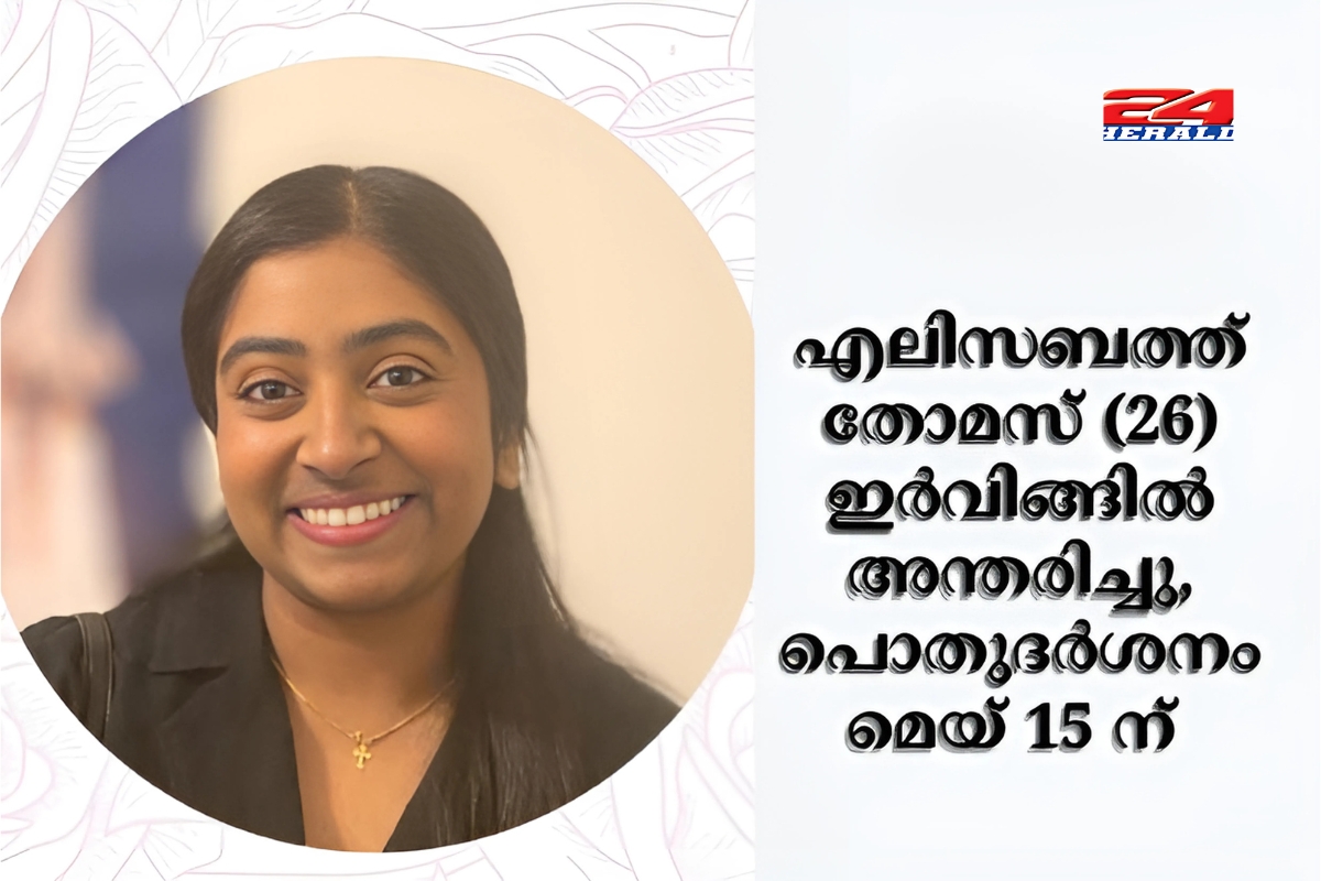 എലിസബത്ത്തോമസ് (26) മെയ് 12 നു ഇർവിങ്ങിൽ അന്തരിച്ചു .കരോൾട്ടൺ,.സെന്റ് ഇഗ്നേഷ്യസ് കത്തീഡ്രൽ അംഗമാണ്