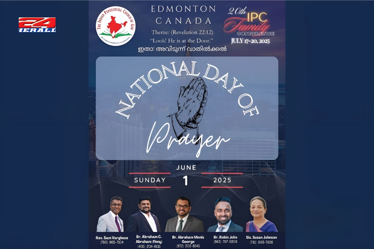 ന്യൂയോർക്ക്: ഐ.പി.സി ഫാമിലി കോൺഫ്രൻസിന്റെ അനുഗ്രഹത്തിനായി നോർത്തമേരിക്കയിലെ മുഴുവൻ ഐ.പി.സി സഭകളും ജൂൺ 1 ഞായറാഴ്ച പ്രത്യേക പ്രാർത്ഥനാ ദിനമായി വേർതിരിക്കണമെന്നും അന്നേദിവസം ലഭിക്കുന്ന സ്തോത്ര കാഴ്ചയും പ്രത്യേക സംഭാവനകളും അതത് സഭകളുടെ സംഭാവനയായി നൽകി സഹായിക്കണമെന്നും ഭാരവാഹികൾ അഭ്യർത്ഥിച്ചു.