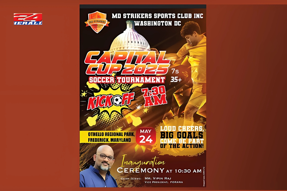 വാഷിംഗ്ടൺ ഡി സി : മേരിലാൻഡ് സ്ട്രൈക്കേഴ്സ് മെയ് 24 ന് നടത്തുന്ന നോർത്ത് അമേരിക്കൻ ക്യാപിറ്റൽ സോക്കർ ടൂർണമെന്റിനുള്ള ഒരുക്കങ്ങൾ പൂർത്തിയായതായി സംഘാടക സമിതി അറിയിച്ചു.