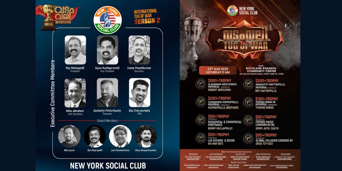 ന്യൂയോർക്കിലെ മലയാളികളുടെ കൂട്ടായ്മയായ ന്യൂയോർക്ക് സോഷ്യൽ ക്ലബ് രണ്ടാമത് അന്താരാഷ്ട്ര വടംവലി മാമാങ്കം സംഘടിപ്പിക്കുന്നത്