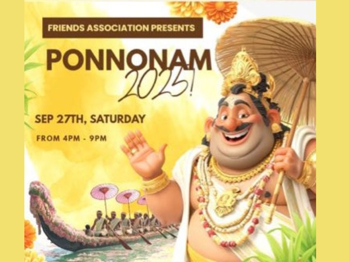 ചെസ്റ്റർഫീൽഡിലെ മലയാളികളുടെ സാംസ്‌കാരിക വേദിയായ ഫ്രണ്ട്സ് അസോസിയേഷന്റെ ഈ വർഷത്തെ ഓണാഘോഷം സെപ്റ്റംബർ 27 ശനിയാഴ്ച.ബെൽവുഡ് കമ്മ്യൂണിറ്റി സെന്ററിലാണ് (9010 Quinnford Blvd, North Chesterfield, VA 23237) ആഘോഷപരിപാടികൾ നടക്കുക.