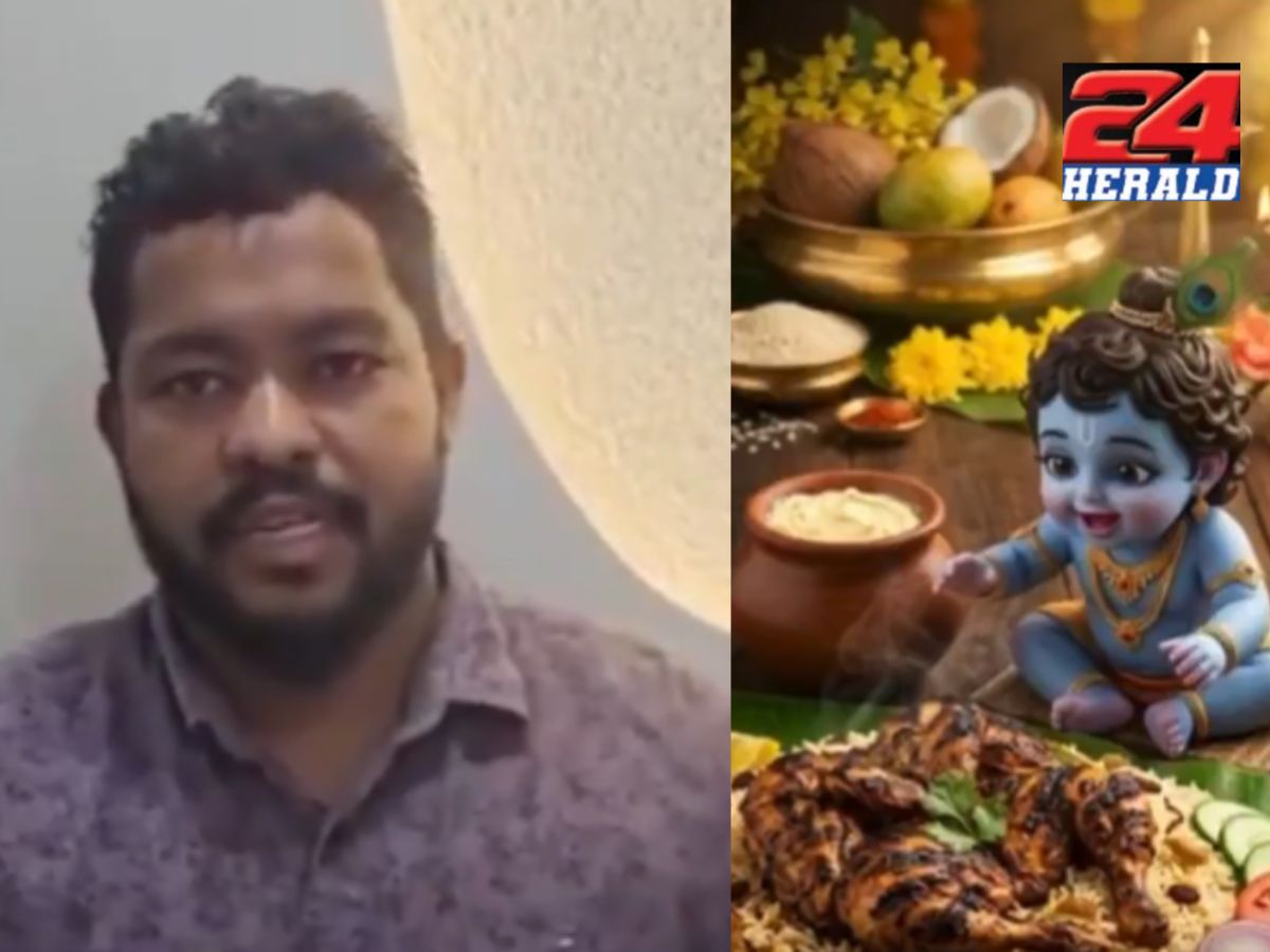 ശ്രീകൃഷ്ണന് അരികിലായി കുഴിമന്തി ഇലയിൽ വിളമ്പി വെച്ച രീതിയിലായിരുന്നു പോസ്റ്റർ. അതേസമയം ഇത് തങ്ങൾ ബോധപൂർവം ചെയ്തതല്ലെന്നും മറ്റൊരാളെ കാർഡ് ചെയ്യാനായി ഏൽപ്പിച്ചതാണ് അദ്ദേഹത്തിന് പറ്റിയ ഒരു പിഴവാണ് എന്നുമാണ് റസ്റ്റോറന്റ് ഉടമയുടെ ഭാഗത്തുനിന്ന് വരുന്ന പ്രതികരണം.